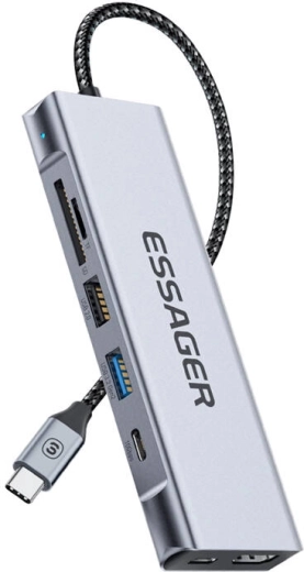 Funcționalitate extinsă și performanță: Essager oferă HDMI, USB-C PD 100W, USB-C, USB 3.2 Gen, USB 2.0 și sloturi SD/TF. Vitezele de transfer ating până la 10 Gbps, iar vitezele de citire/scriere până la 900 MB/s, asigurând transferuri rapide și stabile de fișiere. Portul HDMI permite conectarea la TV, proiector sau monitor, fiind ideal pentru prezentări, vizionare de filme sau lucrul pe un ecran mai mare.