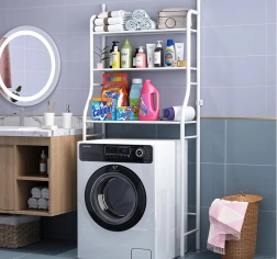 Valorificați fiecare centimetru al băii cu raftul practic de baie deasupra mașinii de spălat. Acest raft utilizează eficient spațiul de deasupra mașinii de spălat, care adesea rămâne nefolosit. Este ideal pentru depozitarea produselor de igienă, a prosoapelor sau a diverselor accesorii de baie.