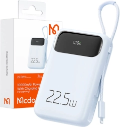 Bucură-te de energie oricând și oriunde. Bateria externă Mcdodo cu capacitate de 10.000 mAh oferă o putere de 22,5 W pentru reîncărcarea rapidă a smartphone-ului, căștilor sau altor accesorii. Datorită dimensiunilor compacte, greutății reduse și curelei practice, o poți pune ușor în buzunar sau în geantă.