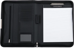 Elegantă și funcțională diplomatka în culoare neagră mată. Închidere cu fermoar, ideală pentru întâlniri și ședințe de lucru. Conține un bloc A4 și buzunare practice pentru toate nevoile dumneavoastră.