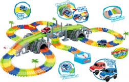 Această pistă de curse flexibilă îi va încânta pe micii piloți cu posibilități nesfârșite de asamblare. Datorită pieselor flexibile, traseul se poate îndoi, răsuci și reconfigura ușor, astfel încât copiii să nu se plictisească niciodată. Două tuneluri de trecere, abaterea și platforma turnantă adaugă mai multă acțiune și situații realiste jocului.