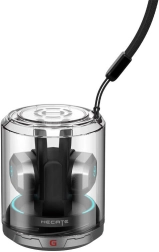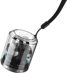 Până la 10 h la o singură încărcare + 18 h din carcasa de încărcare. Carcasa transparentă cu efecte RGB poate fi prinsă cu o curelușă.