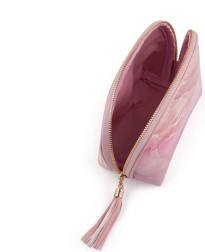 Această geantă cosmetică de călătorie elegantă este ideală pentru purtare zilnică și escapade de weekend. Forma rotundă și varianta roz cu aspect marmorat o transformă într-un accesoriu rafinat, care încape cu ușurință în geantă, rucsac sau bagaj de mână.