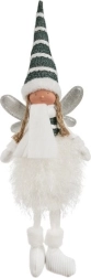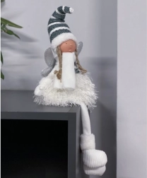 Această zână așezată îmbină stilul de iarnă primitor și un luciu delicat, care luminează orice interior. Datorită formei gândite cu picioare lungi, figurina poate fi așezată în siguranță pe marginea unei polițe, a unei comode, pe șemineu sau pe pervazul ferestrei. Materialele ușoare și catifelate sunt plăcute la vedere și la atingere, în timp ce aripile argintii oferă decorului o strălucire festivă.