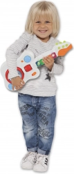 Efectele vizuale adaugă distracție și energie fiecărei interpretări. Alimentarea este asigurată de 3 baterii R6 / AA de 1,5V, care nu sunt incluse în pachet. Chitara este potrivită pentru copii de la 1,5 ani și are dimensiunile de 17 x 40 x 5 cm.