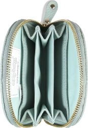 Acest portofel de damă stilat, în îndrăgita nuanță mint, este alegerea ideală pentru purtarea zilnică. Datorită dimensiunilor compacte încape într-o geantă mică sau în buzunar, oferind totuși spațiu suficient pentru tot ce e important.