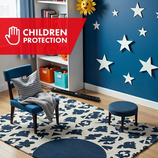 Întrerupătorul automat integrat protejează împotriva suprasarcinii și scurtcircuitului, iar protecția pentru copii împiedică introducerea obiectelor străine în prize.