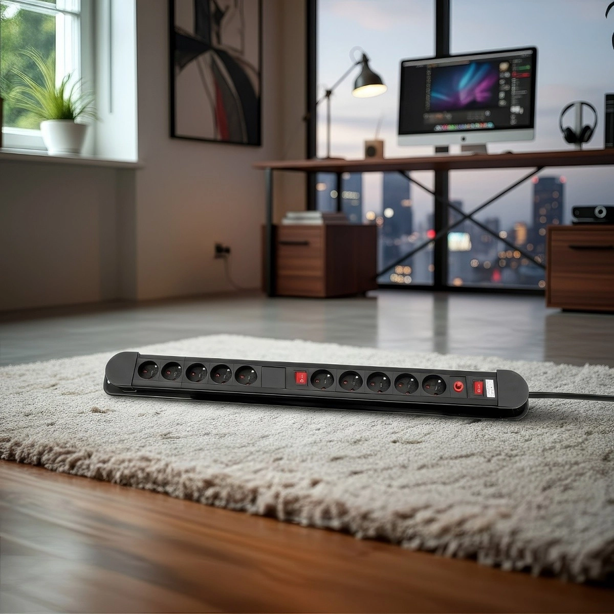 Datorită protecției pentru copii, prizele sunt sigure și în mediul familial. Corpul compact, alungit, cu orificii preconfigurate permite montare ușoară pe perete, sub birou sau pe perete. Puterea maximă de 3680 W și cablul de 1,5 m asigură funcționare fiabilă în locuință, birou și atelier.