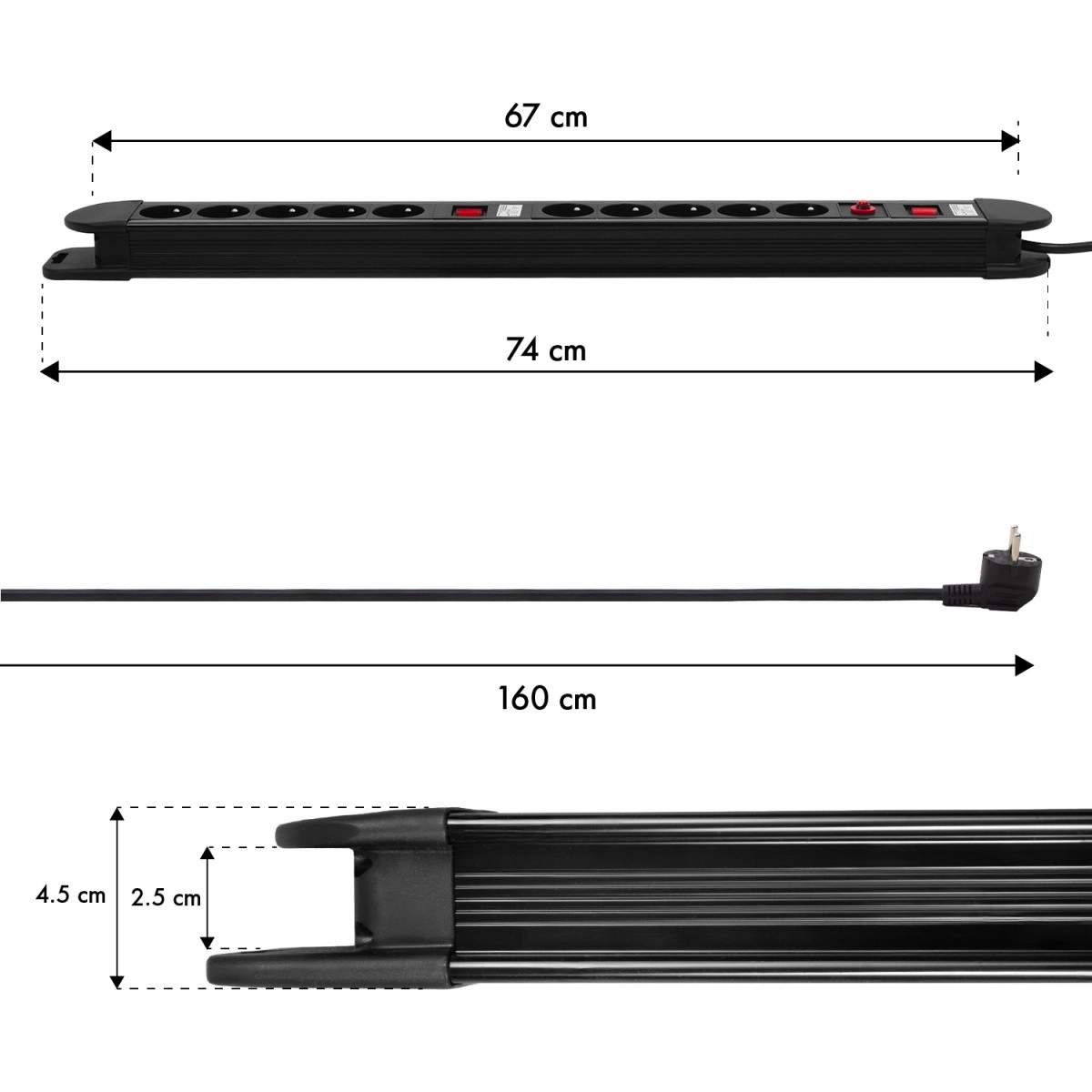 Extindeți alimentarea dispozitivelor dvs. inteligent și în siguranță. Această priză tip bară robustă, cu 10 prize împământate, oferă control flexibil al consumului datorită celor două întrerupătoare separate – fiecare jumătate a barei funcționează independent. Protecția este asigurată de întrerupătorul automat integrat, care intervine imediat în caz de suprasarcină sau scurtcircuit.