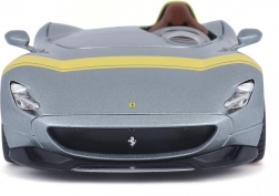 Model metalic superb Ferrari Monza SP1 în culoare argintiu-albastru la scară 1:24 va încânta nu doar colecționarii, ci și toți fanii mașinilor super rapide.