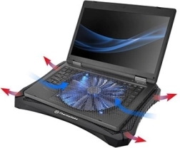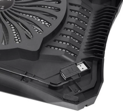 Thermaltake Massive V20 este un suport de răcire fiabil, conceput pentru lucru zilnic și gaming. Marele ventilator de 200 mm sub grila metalică asigură un flux de aer uniform pe toată partea inferioară a laptopului, reducând temperaturile și prelungind durata de viață a componentelor.