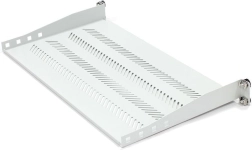 Această poliță staționară robustă este proiectată pentru instalare în rack-uri de telecomunicații 19". Oferă spațiu de depozitare pentru echipamente fără suporturi de montare și este fabricată din oțel perforat pentru flux optim de aer.