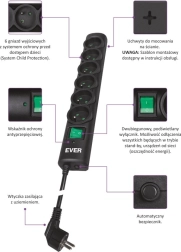 Cu această protecție la supratensiune, puteți conecta în siguranță dispozitivele sensibile, cum ar fi computerele desktop și portabile, periferice și electronice de consum. Ever Optima se ocupă de: