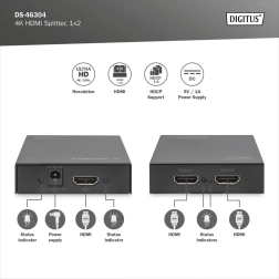 Cu o alimentare de 5V/1A, este ușor de alimentat și datorită indicatorilor LED de stare ai mereu o evidență clară a conexiunilor. Distribuitorul este de asemenea echipat cu funcția de monitor repetare HDCP, asigurând o securitate superioară a transmisiilor de date.