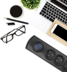 Căutați o soluție inteligentă pentru a alimenta mai multe dispozitive dintr-o singură priză și, în același timp, pentru a face ordine în cabluri? Acest prelungitor cu protecție la supratensiune oferă 8 prize, cablu de alimentare de 3 m și control practic datorită întrerupătorului cu pedală Quick Switch iluminat – porniți și opriți alimentarea fără să vă aplecați, printr-o singură apăsare cu piciorul.