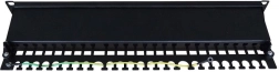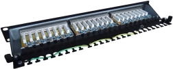 Patch panelul este fabricat din oțel de calitate cu grosime CECC 1.5 mm, asigurându-i durabilitate și rezistență. Oferă contacte de fosfor bronz de înaltă calitate, suprafață nichelată și aurire pentru asigurarea unei conexiuni fiabile.