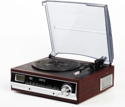 Un gramofon retro stilat, care îi va încânta atât pe iubitorii de viniluri, cât și pe ascultătorii moderni. Oferă redarea discurilor la 3 viteze 33/45/75 rot./min, radio integrat, intrare AUX pentru conectarea altor surse și difuzoare încorporate. Desigur, include un capac antipraf transparent și un design elegant din lemn.