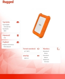 LaCie Rugged este un disc dur proiectat pentru cei care au nevoie de siguranță pentru date chiar și pe drum. Principala sa caracteristică este construcția robustă, asigurând rezistența la căderi, impact și ploaie.
