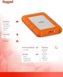 Disc extern LaCie Rugged USB-C 4TB este proiectat pentru cei care caută o soluție de stocare rezistentă cu o capacitate mare. Construcția sa compactă cu dimensiuni de 86 mm x 135,1 mm x 26 mm și o greutate de doar 400 g permite transportul ușor. Cu o capacitate de 4 TB veți avea suficient spațiu pentru toate fișierele, inclusiv fotografii, videoclipuri și documente.