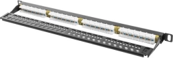 Datorită celor 24 de porturi RJ-45 ne-ecranate din categoria Cat.5e, este ideal pentru aplicații de date și telecomunicații. Clemele universale IDC/LSA compatibile cu standardele T568A/B permit instalare rapidă și sigură, iar organizatorul de cabluri inclus menține traseele ferme și estetice.