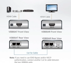 VE800A Extensorul HDMI extinde raza de acțiune a monitorului HDMI până la 60 m de la un dispozitiv HDMI portabil folosind un singur cablu Cat 5e. VE800A de la ATEN utilizează o tehnologie nouă care permite transmiterea semnalelor A/V printr-un singur cablu Cat 5e. Este disponibil un port DDC, care permite utilizarea EDID-ului monitorului prin conectarea unui cablu Cat 5e suplimentar. Modelul VE800A acceptă funcții HDMI, precum 3D și Deep Color, oferind calitatea excelentă a imaginii pe care o așteptați.