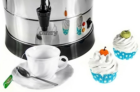 Dozatorul de apă fierbinte CR 1259 din oțel inoxidabil permite încălzirea apei și menținerea temperaturii acesteia. Este indispensabil în pauzele de cafea la conferințe, precum și în diverse întâlniri de afaceri, științifice și sociale. Datorită mobilității sale, este ideal pentru utilizare în organizarea de evenimente. Răcitorul de apă Camry este ușor și comod de folosit și asigură, de asemenea, siguranță în utilizare (mânere și robinet care nu se supraîncălzesc).