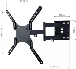 - Brațele duble oferă posibilitatea ajustării distanței față de perete și a înclinării ecranului.