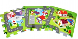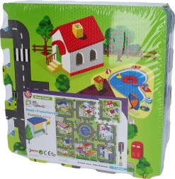 Piesele sunt complet lavabile și nu conțin substanțe dăunătoare. Pot fi folosite atât ca covoraș de joacă, cât și ca blocuri individuale pentru construit și activități creative. Tema orașului stimulează imaginația și dezvoltarea motricității fine și grosiere.