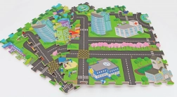 Acest covoraș din spumă – puzzle cu motiv de oraș transformă camera într-un mediu jucăuș și sigur. Datorită spumei EVA moi, atenuează șocurile, izolează frigul din podea și oferă copiilor un loc confortabil pentru târât, stat jos și primii pași.