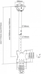 Suport de tavan pentru LCD/LED 23-42 inch 50kg reglabil, negru