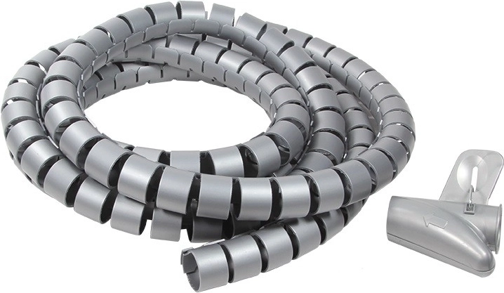 Brățara spiralată pentru cabluri este ideală pentru organizarea cablurilor de alimentare, date și AV, atât acasă, cât și la birou. Datorită diametrului de 25 mm, poate găzdui un mănunchi mai mare de conductori și se adaptează formei instalației. Lungimea de 2,5 m oferă suficientă rezervă pentru birouri, pereți TV și dulapuri de distribuție.