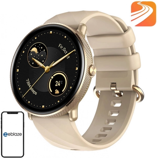 Carcasa metalică aurie și cureaua bej conferă ceasului un aspect și un stil modern. Interfața tactilă face navigarea ușoară.