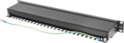 Patch panelul este un element pasiv al cablajului structurat utilizat pentru terminarea și organizarea perechilor răsucite în standuri rack de dimensiune 19". Este echipat cu 24 de porturi ecranate RJ-45 categorie 5e și folosește conectori universali IDC/LSA pentru montaj ușor și rapid. Polița întărită cu suporturi asigură o organizare ușoară a cablurilor și stabilitatea montajului.
