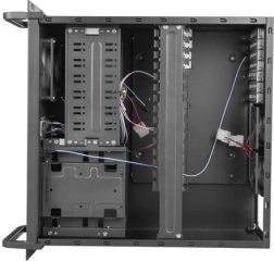 Partea din spate a carcasei oferă sloturi multiple de expansiune, locașuri pentru ventilatoare și spațiu pentru sursa de alimentare pentru o funcționare stabilă.