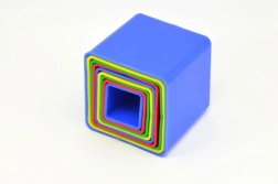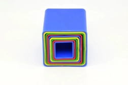 Această set de 9 cuburi de stivuit oferă distracție și învățare într-un singur produs. Datorită designului gol, copiii pot stivui ușor un turn înalt sau, dimpotrivă, le pot introduce unul în altul, exersând motricitatea fină, coordonarea mână–ochi și percepția spațială.
