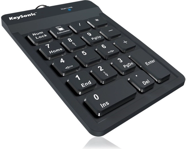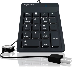 Această tastatură numerică este fabricată din silicon, oferindu-i protecție absolută împotriva prafului și rezistență la apă, conform standardului IP64. Este dotată cu un buton multifuncțional încorporat care servește pentru a porni calculatorul pe sistemul Windows.