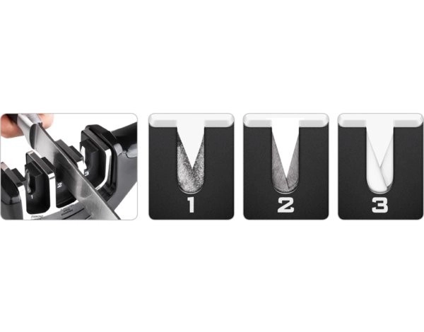 - Proiectat pentru ascuțirea cuțitelor din oțel inoxidabil