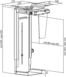 Păstrați spațiul de lucru curat și organizat cu suportul nostru reglabil pentru PC montat sub birou. Proiectat special pentru montaj sub birou, acest suport economisește spațiu și asigură protecția dispozitivului. Cu o construcție solidă și un aspect elegant, este alegerea ideală pentru orice loc de muncă.