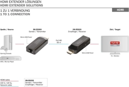 Setul de convertoare HDMI DIGITUS permite extinderea standardului de lungime a cablului HDMI până la 50 de metri folosind un singur cablu de rețea (Cat 6/6A/7). Datorită acestei extinderi, puteți muta ușor și discret ecranul în locul dorit.