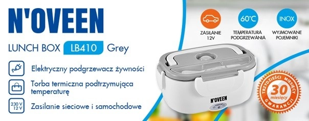 Încălzitorul electric de alimente Lunch Box LB410 Grey combină funcționalitatea și mobilitatea. Dispozitivul robust și estetic este echipat cu un element de încălzire PTC, care permite încălzirea alimentelor la 60 °C în 20 de minute. Încălzitorul este închis ermetic cu cleme care împiedică pătrunderea aerului. Datorită acestui lucru, mâncarea rămâne proaspătă mai mult timp. Lunch Box-ul LB410 Grey este o soluție pentru persoanele care apreciază activitatea și alimentația sănătoasă. Este ideal pentru serviciu, universitate, călătorii, grădină și vacanțe la camping. LB410 are două surse de alimentare: rețea 230 V și auto 12 V.