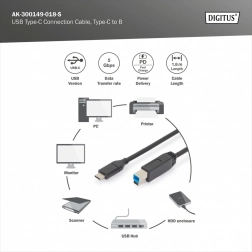 Acest cablu USB 3.0 de calitate, cu conectori USB‑C (tată) – USB‑B (tată), este destinat conectării dispozitivelor gazdă (PC, laptop, hub USB) la periferice echipate cu port USB‑B, precum carcase externe pentru HDD, scanere sau imprimante. Datorită standardului USB 3.0, atinge transfer SuperSpeed de până la 5 Gbit/s, de până la 10× mai rapid decât USB 2.0, permițând backupuri rapide și lucru fluent cu fișiere mari.