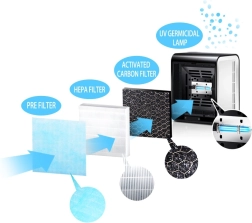 Elimină și mirosurile neplăcute și gazele nocive, precum formaldehidă, benzen și xilen. Lampa UV integrată distruge bacteriile, acarienii, virușii și mucegaiurile, în timp ce ionii negativi elimină bacteriile prin combinarea cu particulele de praf și fum.