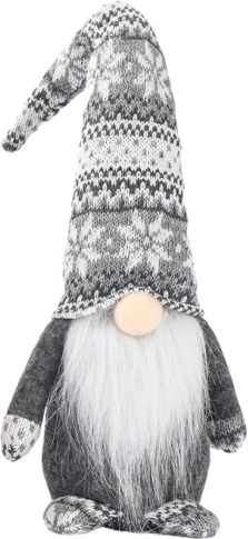 .Datorită greutății echilibrate, spiridușul este foarte stabil și stă ușor în picioare. Culoarea sa gri clasică, combinată cu modele subtile în nuanțe de gri, îl face potrivit pentru diverse stiluri de decorațiuni de Crăciun.