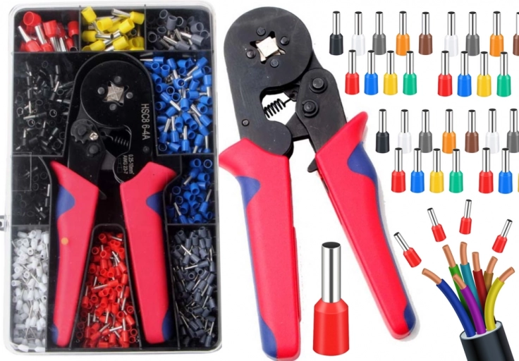 Această trusă pentru presarea clemelor de cablu, care conține 1200 bucăți de cleme, este
