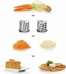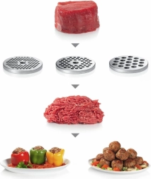 - Funcțiile (peste 10) permit tocarea cărnii și a peștelui, dar și răzuirea/ mărunțirea legumelor, fructelor, brânzeturilor și altele