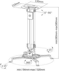 Suport de tavan universal pentru proiectoare, cu lungime reglabilă 38–58 cm, în finisaj elegant argintiu. Construcție sigură din oțel și aluminiu, capacitate de încărcare 13,5 kg și prindere compatibilă cu majoritatea proiectoarelor pentru o instalare fiabilă acasă, la birou sau în spații comerciale.