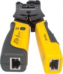 Instrument universal profesional pentru sertizarea fișelor, cu funcții de tăiere și dezizolare, și tester de cabluri.