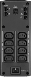 Ecranul LCD integrat afișează clar sarcina, starea bateriei și timpul de funcționare estimat. Pe panoul din spate găsiți 8 prize IEC C13 pentru backup și protecție la supratensiune, precum și interfețe USB / serial / Ethernet pentru administrare și integrare în infrastructura de rețea.