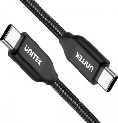 Cablu universal USB‑C ↔ USB‑C de 2 m pentru încărcare rapidă și transfer de date. Suportă Power Delivery până la 100 W (20 V/5 A), are cip E‑Marker integrat, împletitură din nailon rezistentă și conectori USB‑C reversibili pentru o conectare ușoară. Viteză de transfer până la 480 Mb/s conform USB 2.0.