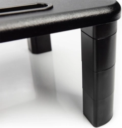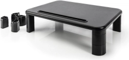 Bucurați-vă de un lucru mai confortabil la computer cu acest suport pentru monitor stilat și funcțional. Designul modular permite setarea înălțimii în trei trepte, în funcție de nevoile dvs., asigurând o poziționare ergonomică a monitorului. Partea frontală a suportului este concepută pentru a vă permite să așezați tableta sau smartphone-ul, folosind eficient spațiul de pe birou.
